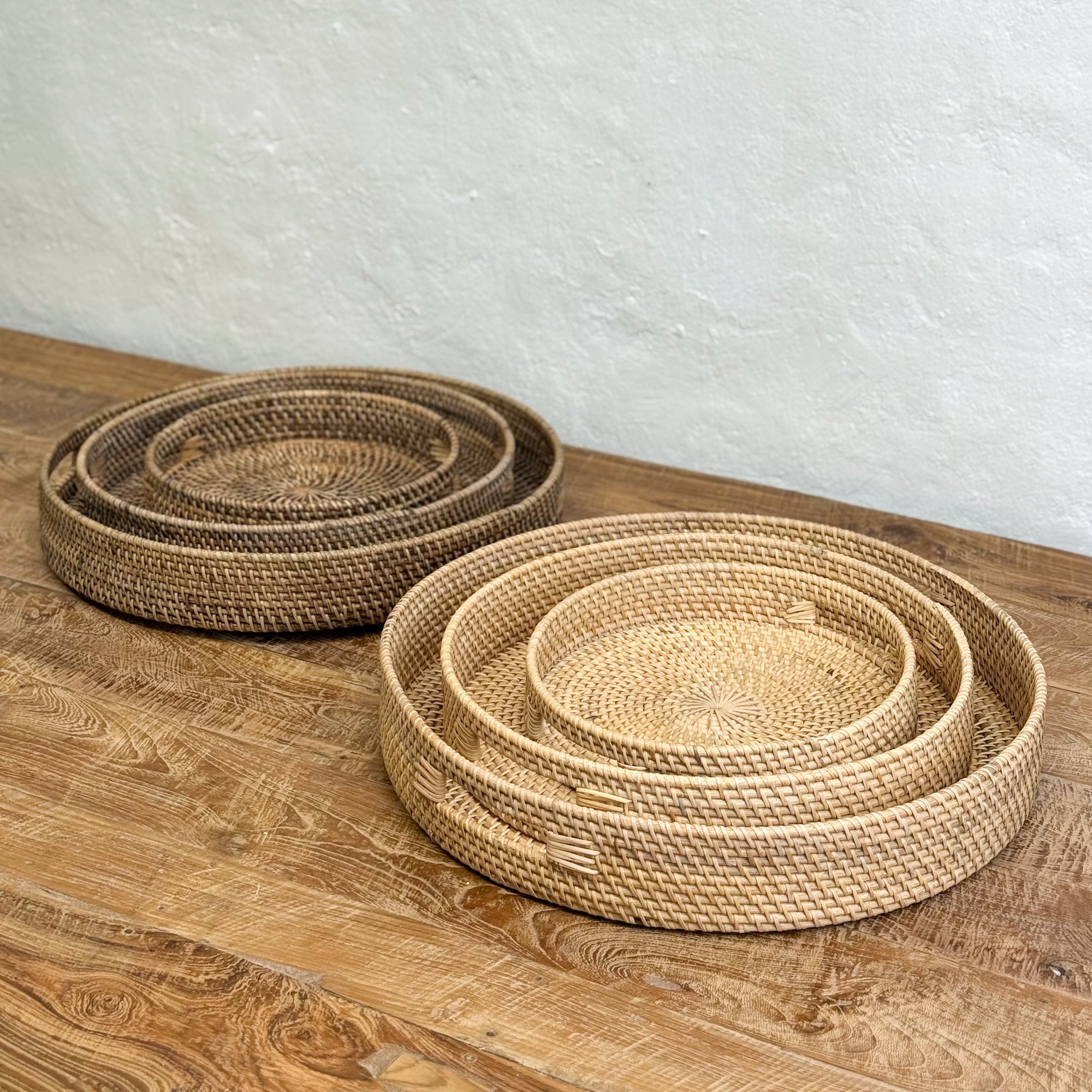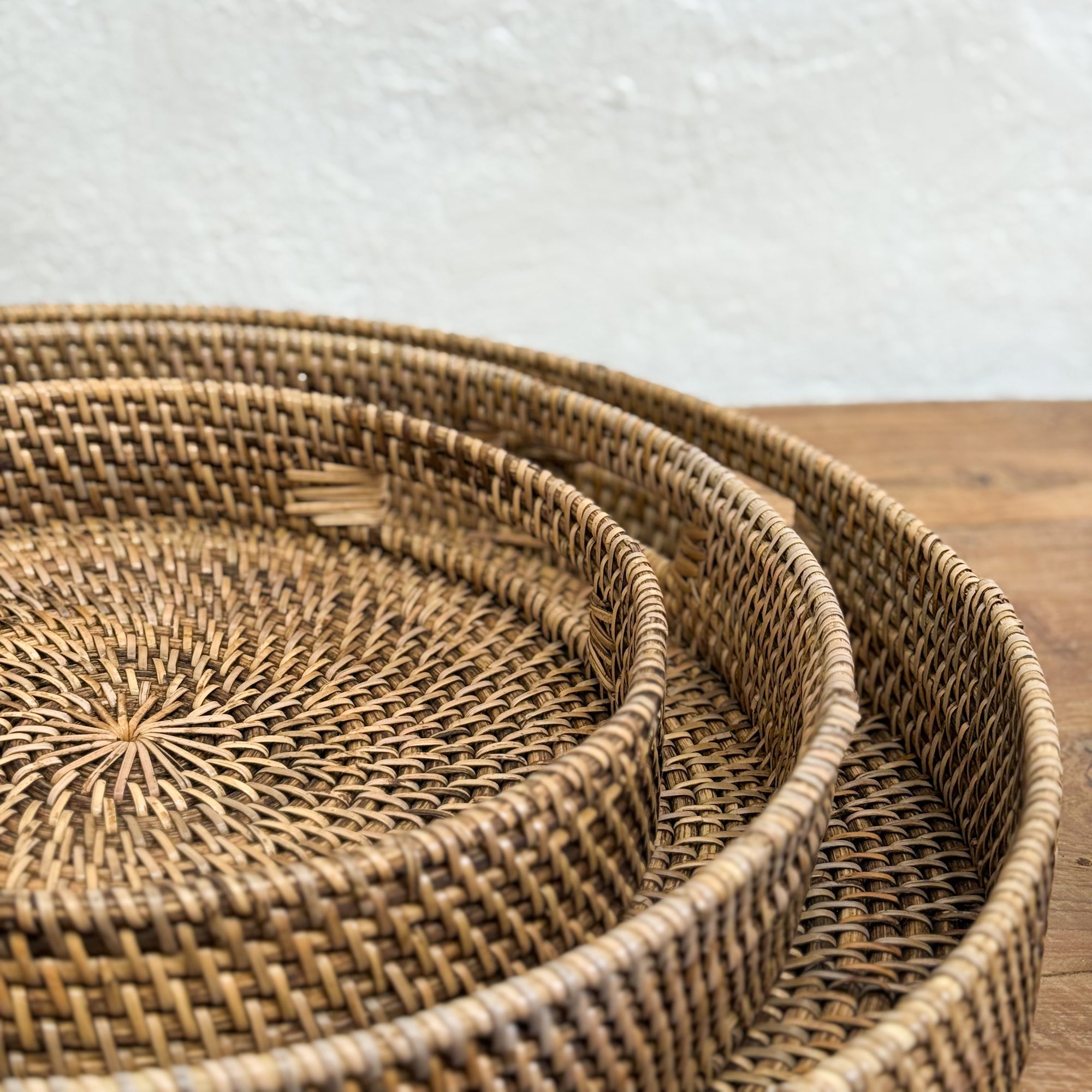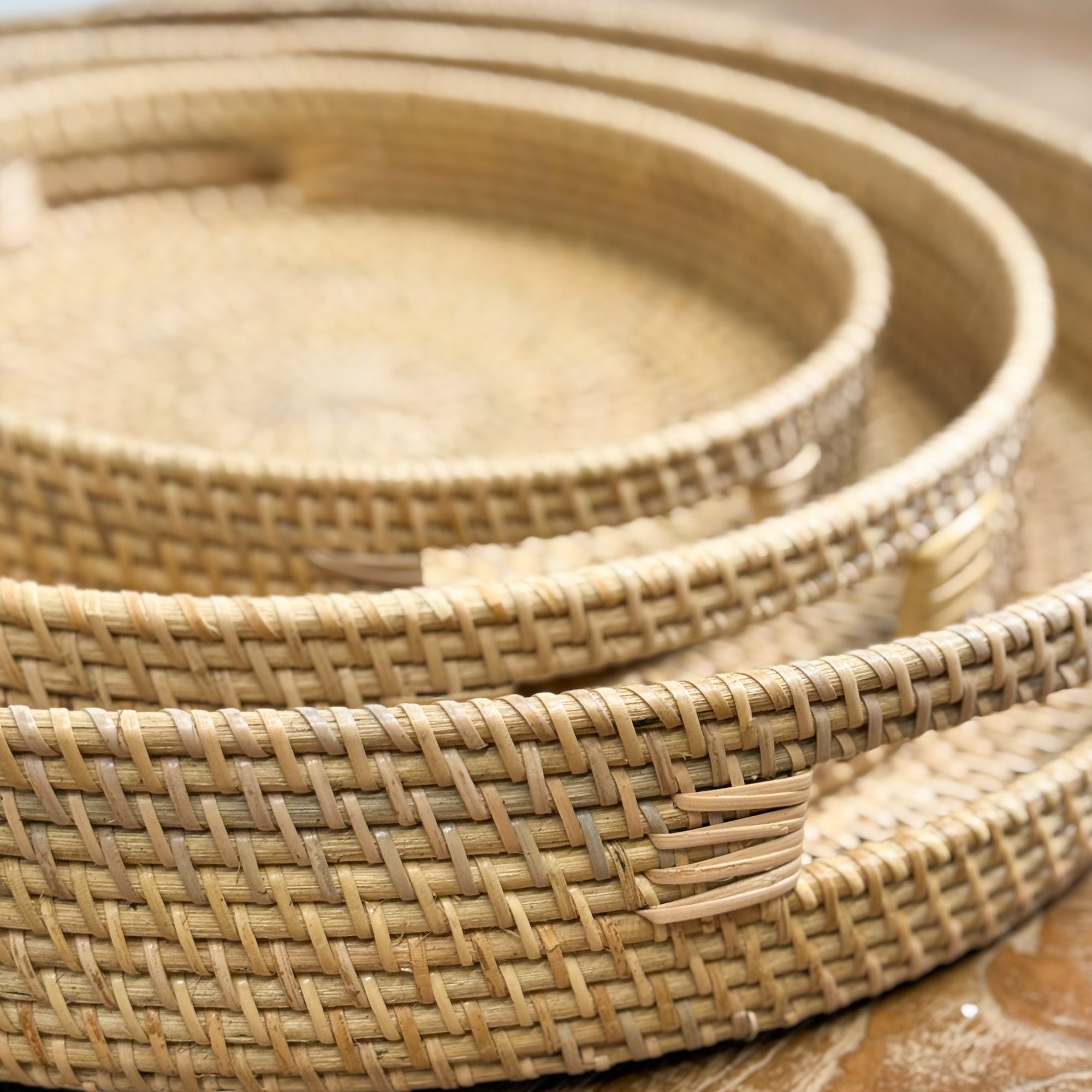Round Rattan Tray with Handles