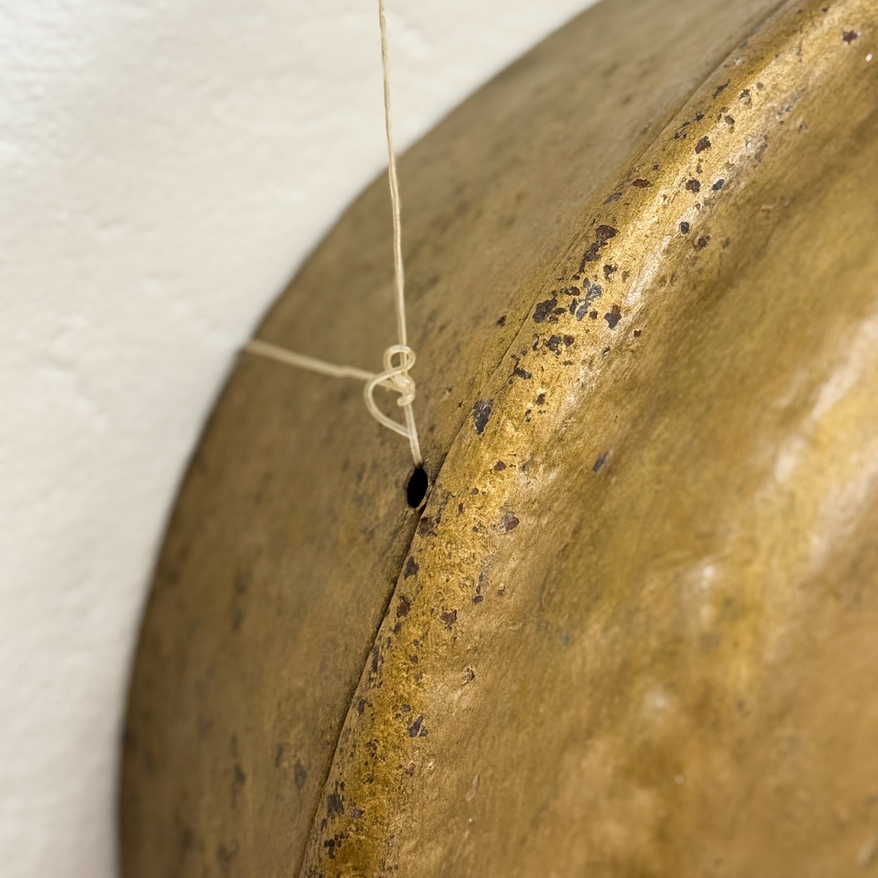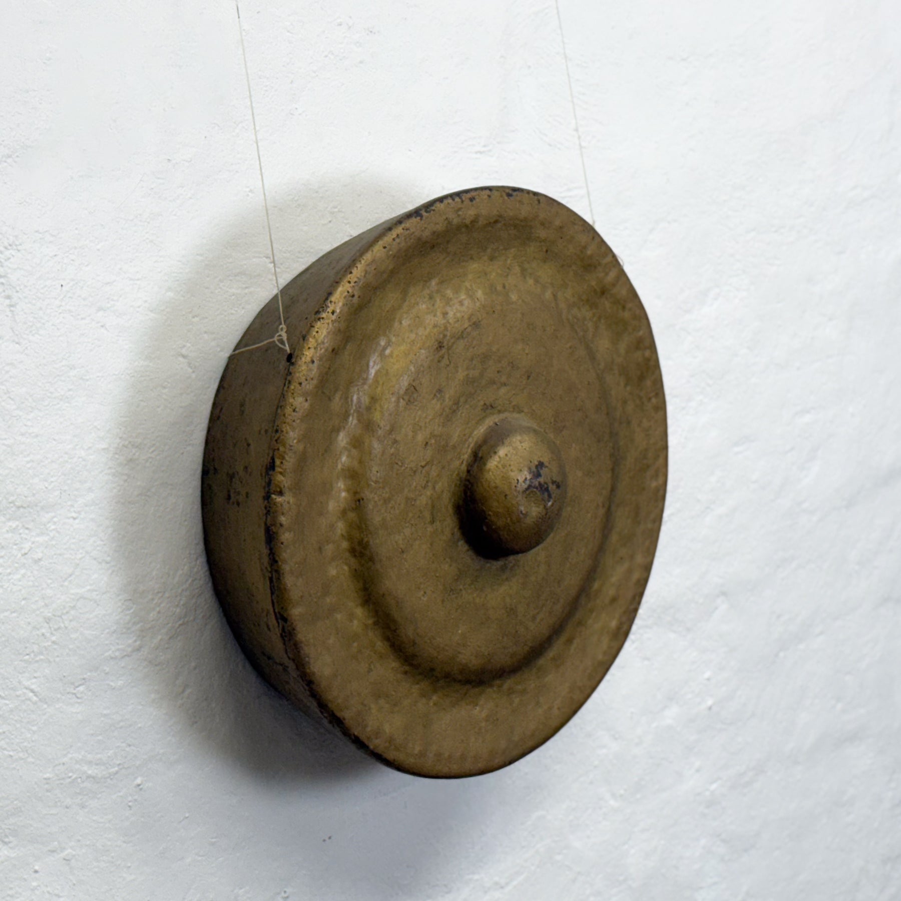 This hand made Balinese gong features a classic round bronze form with a warm, aged patina. Crafted using traditional techniques, it brings subtle cultural character to any room, whether displayed on a wall as a decorative accent or used as a unique piece in a living or entry space. Historically, gongs like this were central to Balinese temple ceremonies and celebrations, valued for their deep resonant tones that marked important moments and connected communities.