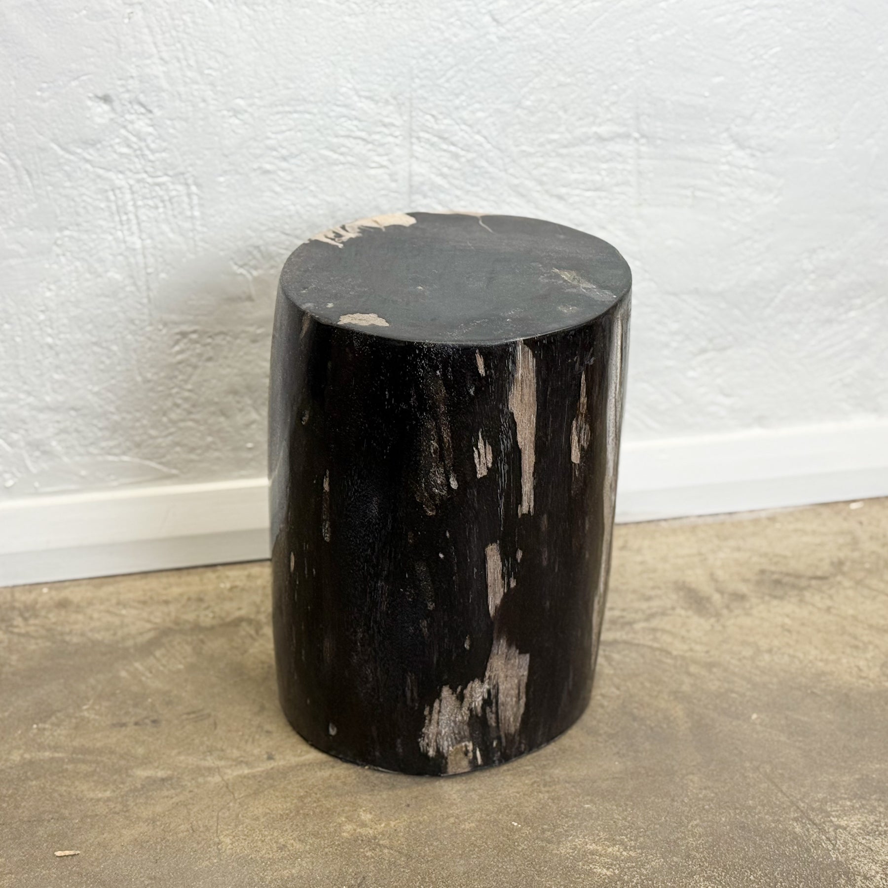 With its dark, almost black tone and subtle light veinings, this petrified wood stool from Bali exudes quiet sophistication. Formed over millennia, each piece is unique in its grain and depth, offering both natural drama and timeless appeal. A beautiful choice for modern or earthy interiors as a side table, display stand, or sculptural seat.