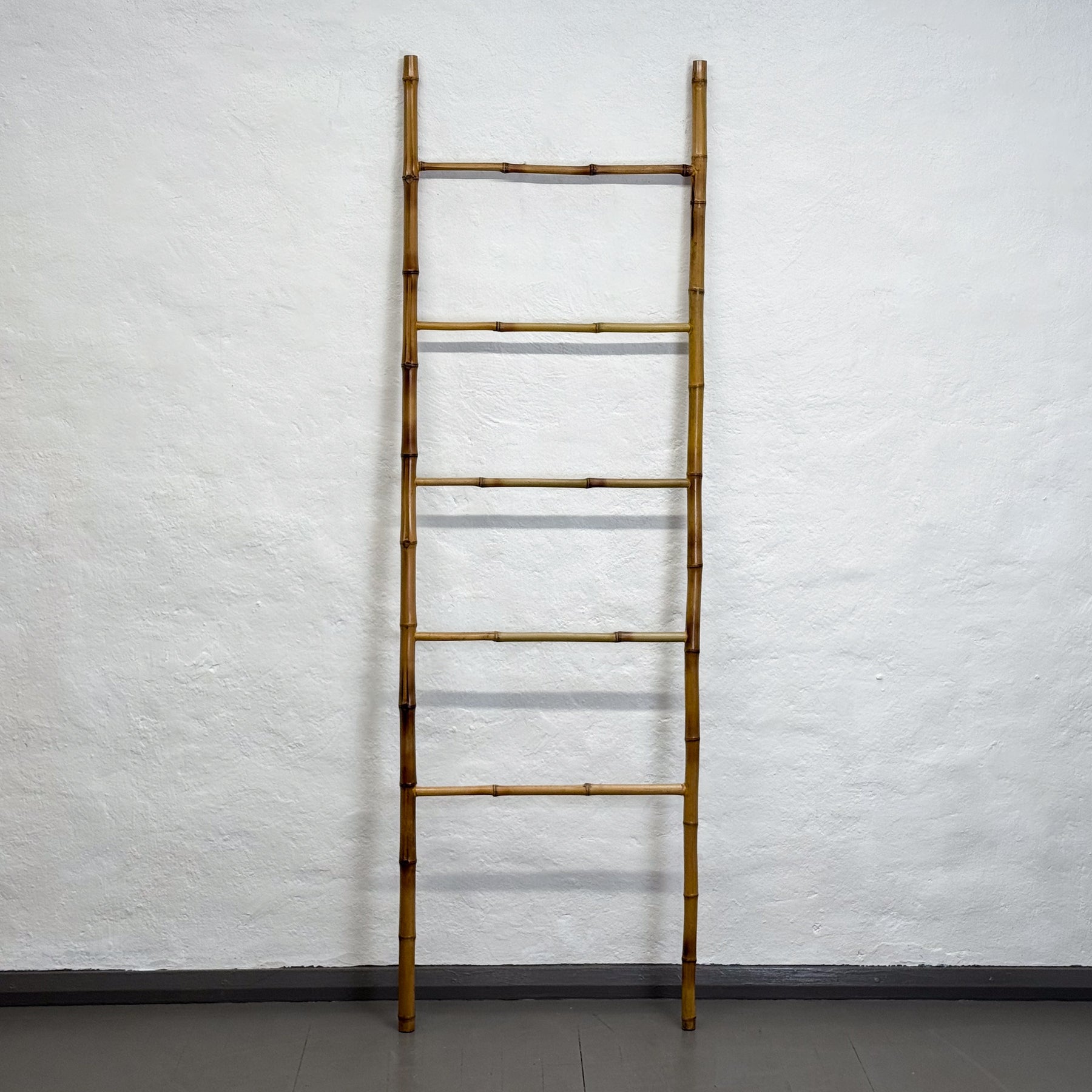 Handcrafted in Bali from natural bamboo, this ladder features a warm, honey-toned patina and beautiful nodal accents unique to each piece. Distinguished by its minimal, elegant form, it is perfect for hanging textiles in a living room or towels in a spa-inspired bathroom. Celebrating artisanal skill and organic beauty, it transforms practical storage into a stylish focal point for refined interiors.