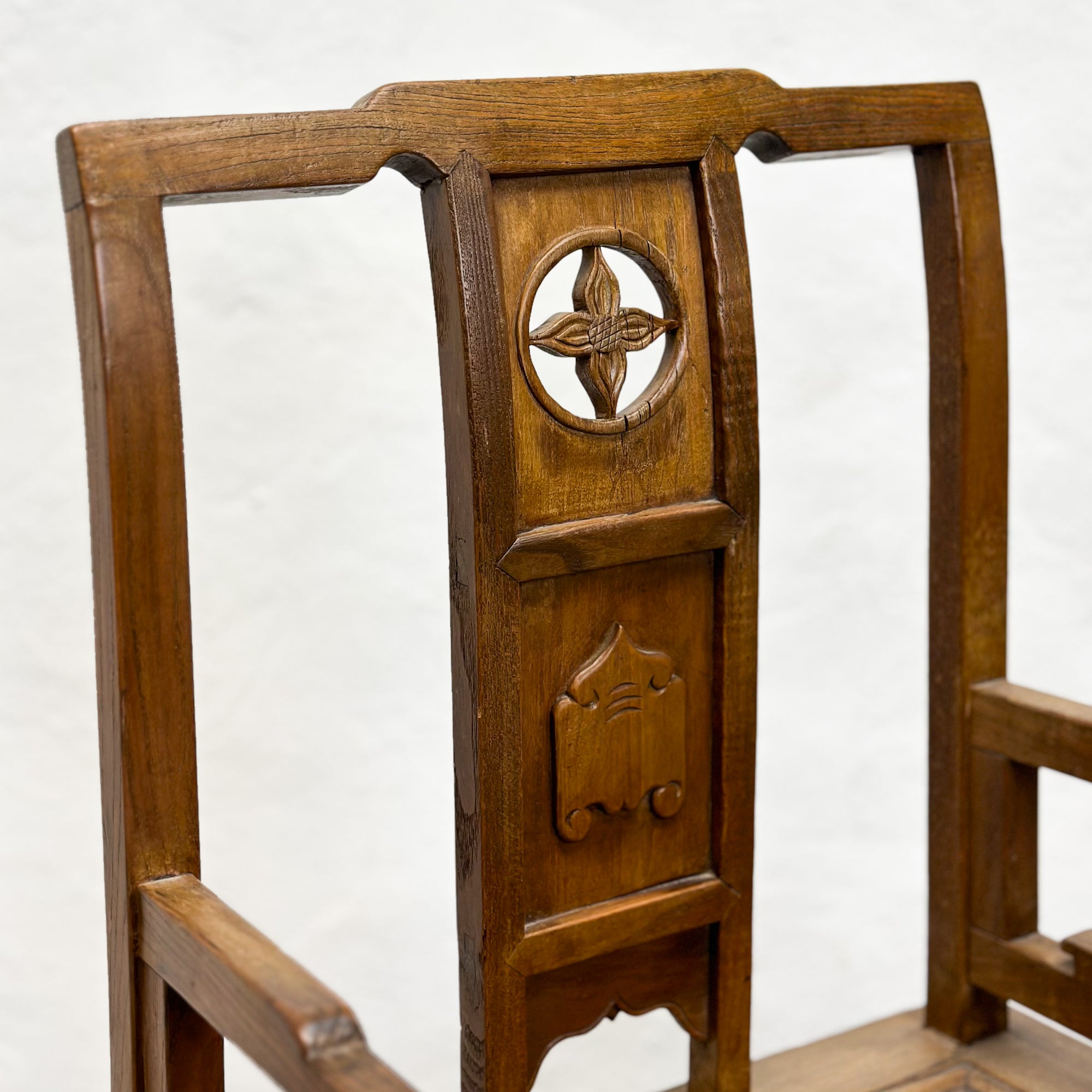 Crafted with meticulous artistry, this authentic piece reflects the traditional design of southern style Chinese official chairs. Its curved backrest, rich patina, and sturdy construction showcase both elegance and historical significance, adding a touch of prestige to any space.