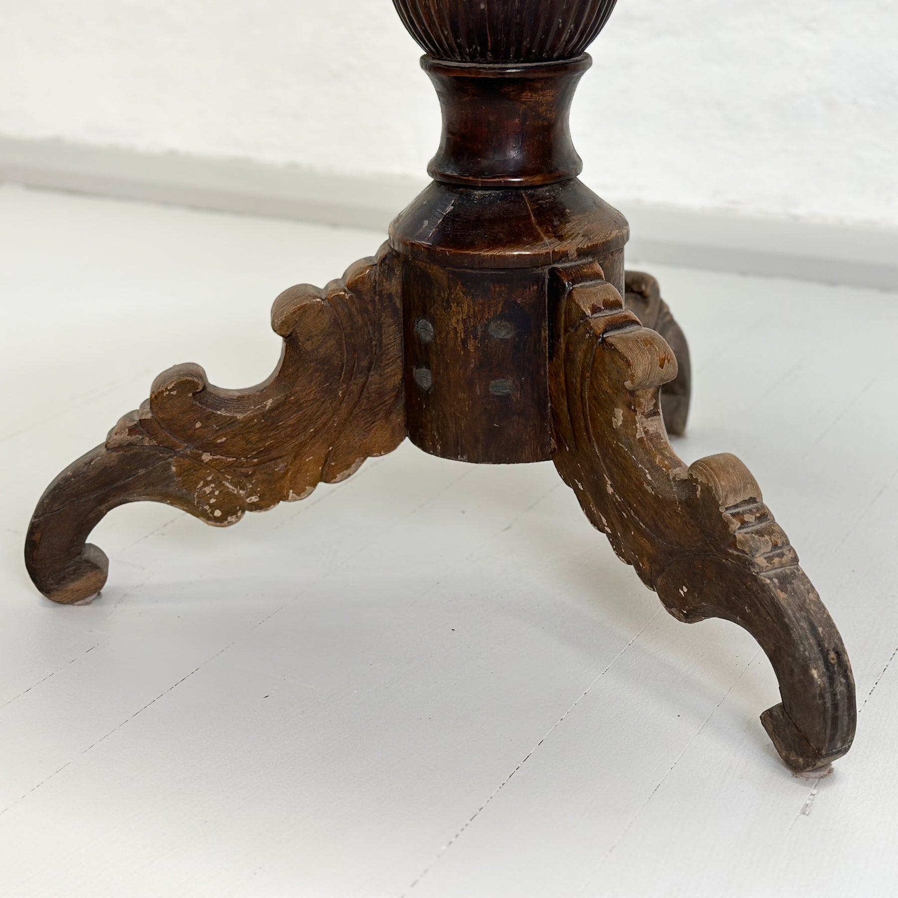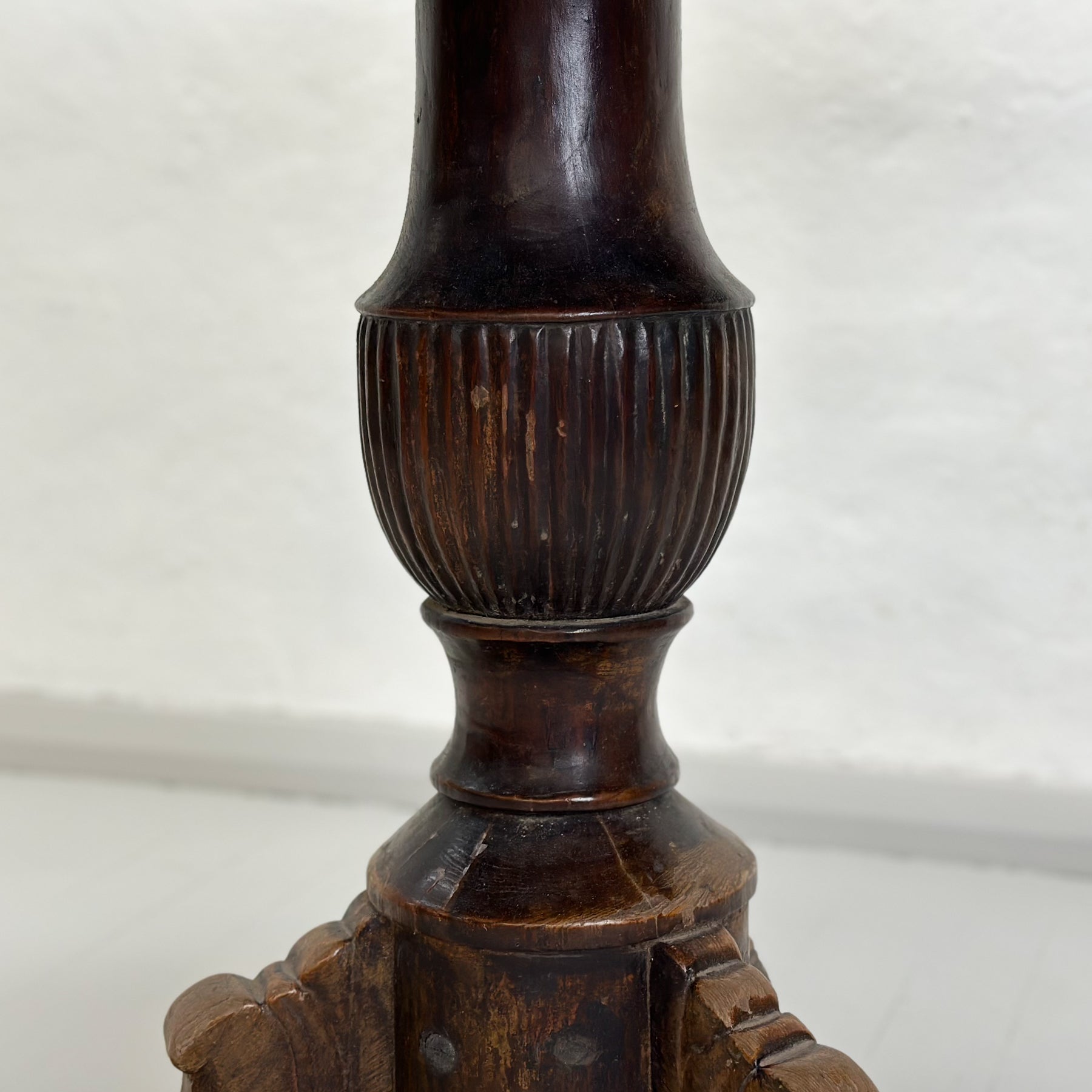 Vintage Teak Pedestal Table with Carved Leg