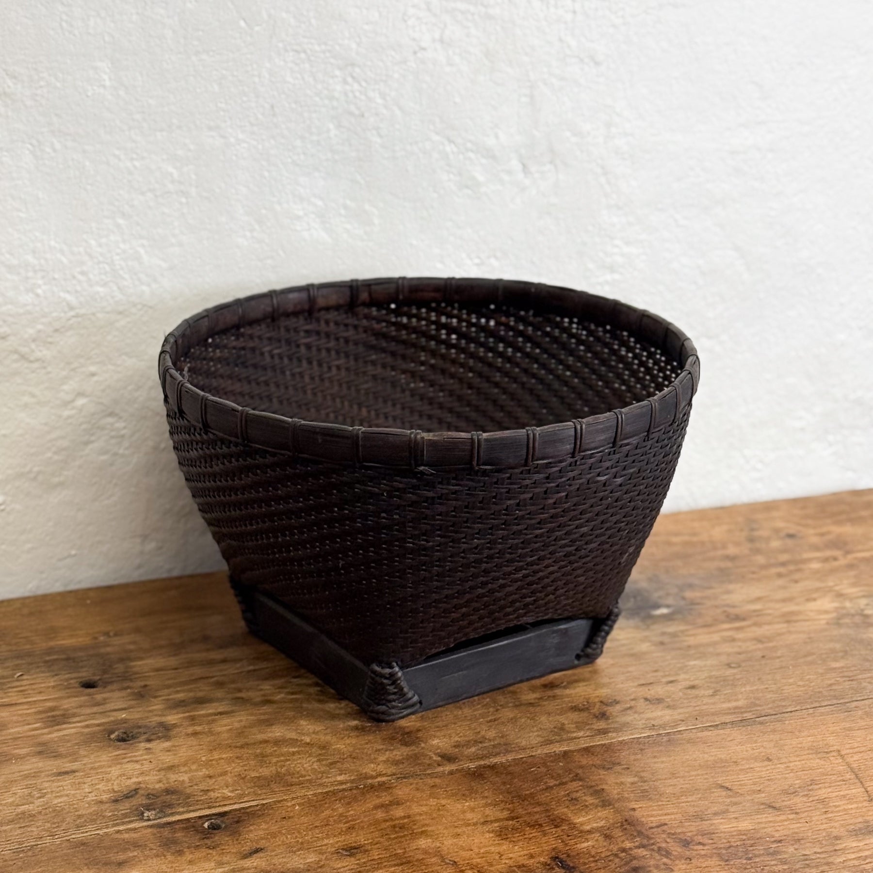 The beauty of this vintage basket is that it is handmade, with effort and imperfections.  Crafted in Lombok this basket reflects Indonesia’s timeless weaving traditions. Each rustic storage bowl, basket, or catchall is carefully handwoven and rich in patina, making it ideal for entryways, living rooms, or studios. A beautiful, vintage accent for coastal, tropical, and eclectic interiors, merging practicality with artisanal history.