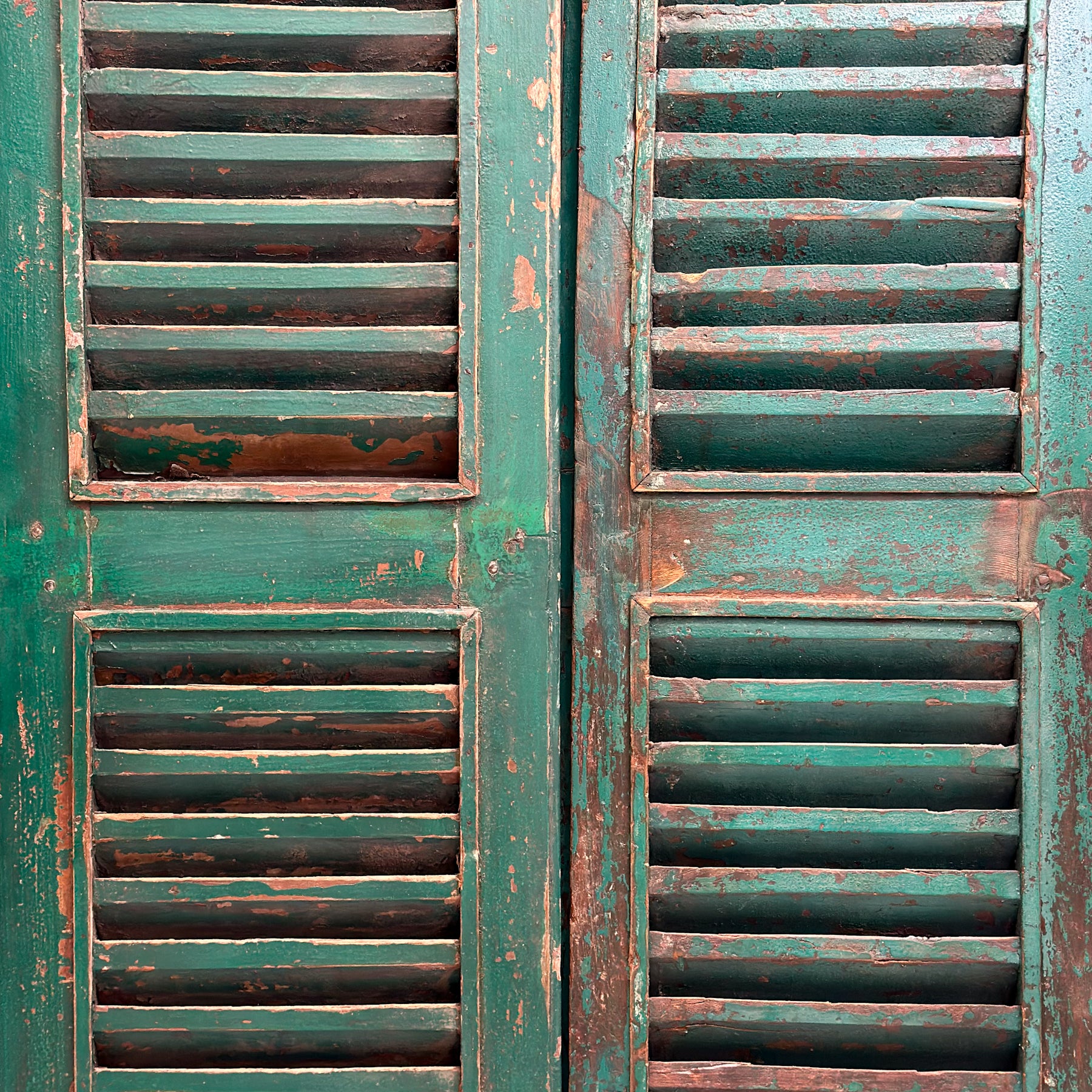 These lovely Indian shutters with their rich patina could do service as a decorative screen or simply as a textural statement against a wall, indoors or out. They would also make a stunning entryway on a street boundary wall.